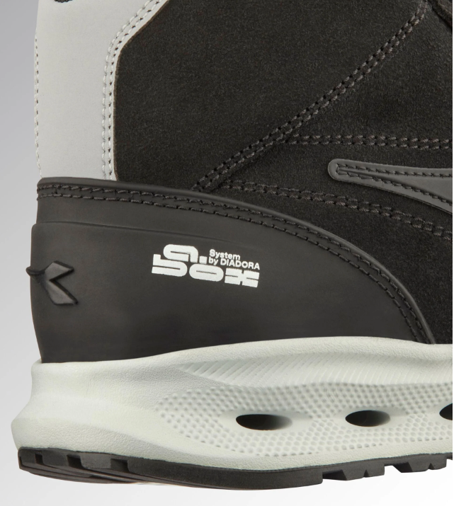 Inovatyvi ventiliacija: „Diadora A.Box System“ technologija, apjungianti šoninę oro cirkuliaciją, „Ariatex“ membraną ir poliesterio „Air Mesh“ pamušalą efektyviam drėgmės pašalinimui bei pėdos termoreguliacijai.