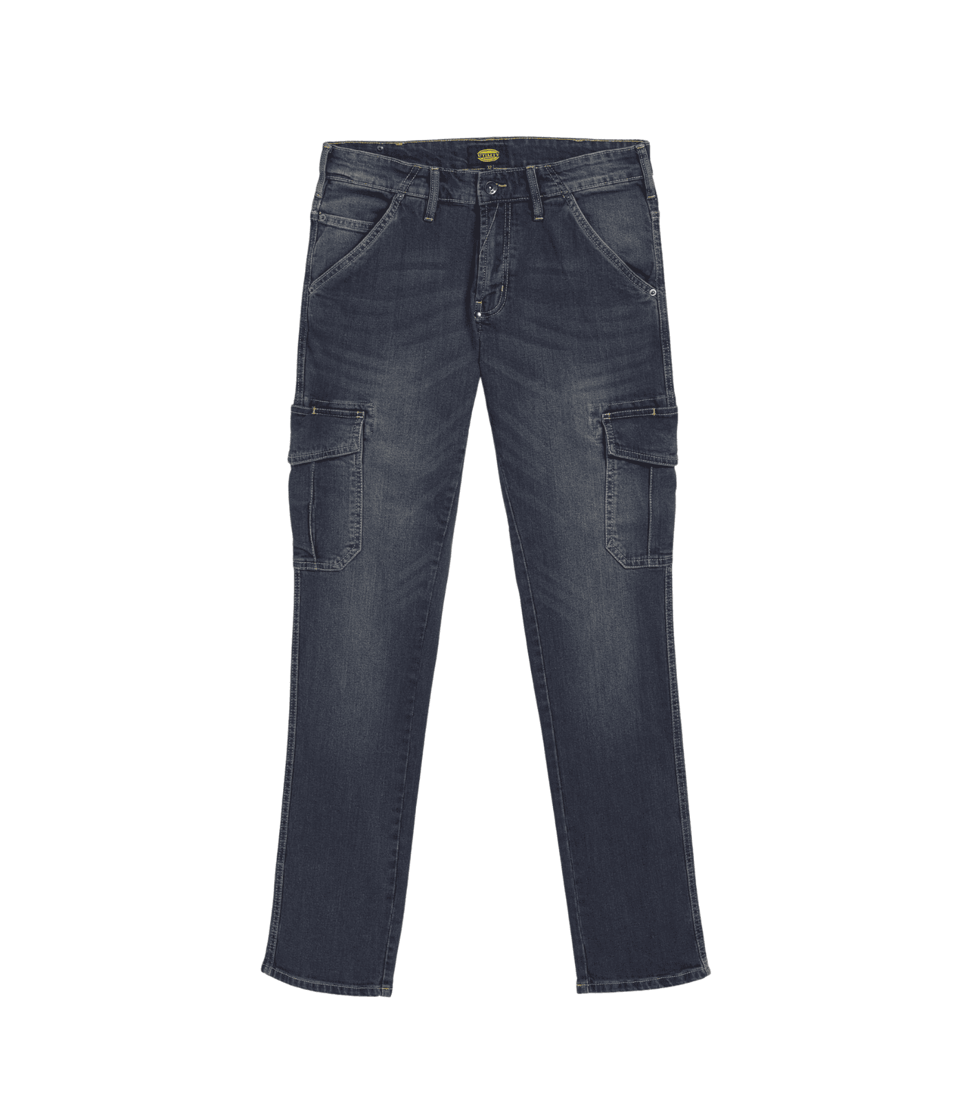 Itin patvarūs ir tamprūs džinsai su 6 kišenėmis (2 talpios CARGO kišenės klešnių šonuose).